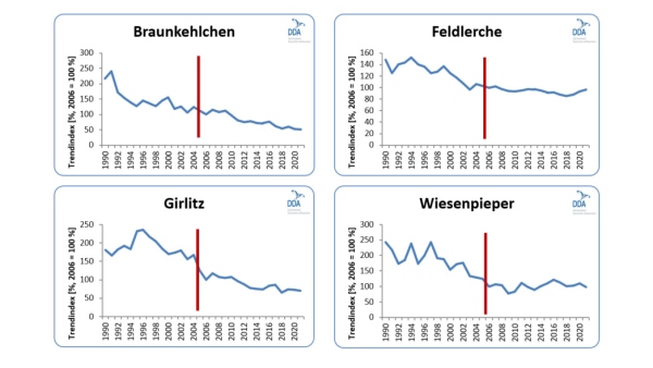 die Bestandstrends vor und nach den Kartierungen für ADEBAR, die mittlerweile über 15 Jahre zurückliegen,