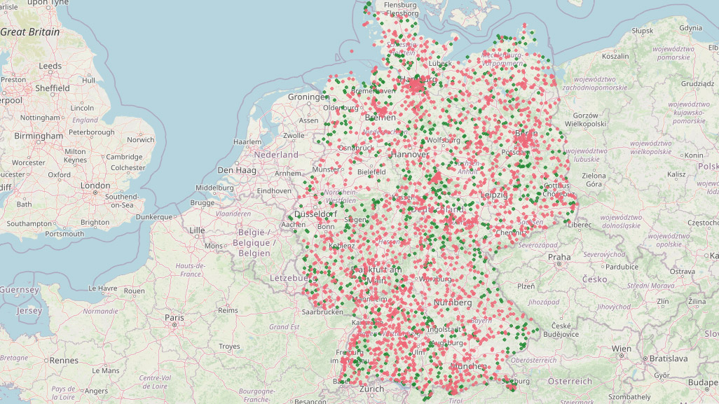Schauen wir uns drei Beispiele an. In den folgenden Verbreitungskarten sind die Darstellungen wie folgt zu interpretieren.