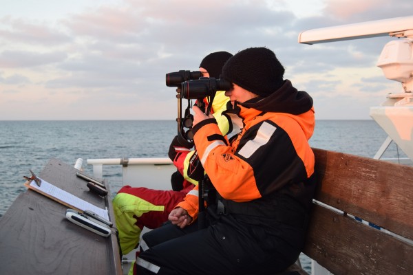 durchgeführt. Dabei werden die Seevögel im Rahmen von Transektzählungen quantitativ erfasst.