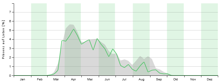 zahlreiche Informationen über die Verbreitung und das jahreszeitliche Auftreten (klicken Sie die Karte oder die Phänologie an, um sie als größere Version zu öffnen).